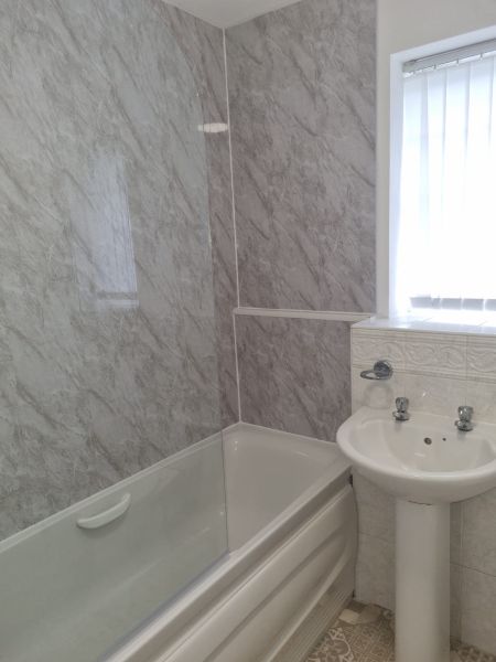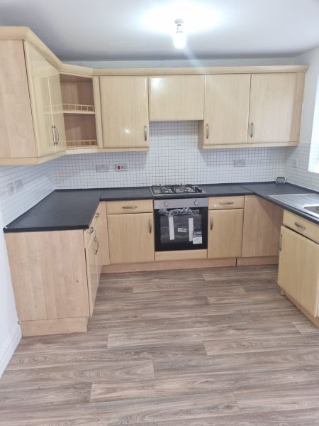 Upon entry to the property, you are greeted with a large open plan living space which leads on through to the spacious kitchen/dining area with brand new oven, hob and fan. The kitchen has plenty of storage space as well as a breakfast bar and then has patio doors leading out to the large rear garden area. Downstairs also consists of a w/c.Upstairs there are three good sized bedrooms each fitted with laminate flooring and a family bathroom with thermostatic shower over bath. Gas central heating, fitted blinds and new flooring complete this specification. Early viewing is highly recommended to appreciate all this proeprty has to offer. EPC C / Council tax band BAll applicants subject to credit checks and referencing and must provide a guarantor.